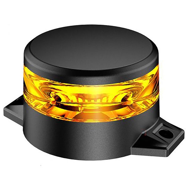 Rundtlysende varsellys med aluminiumsbase beregnet for planmontasje. Lettplassert og passer i trange rom.