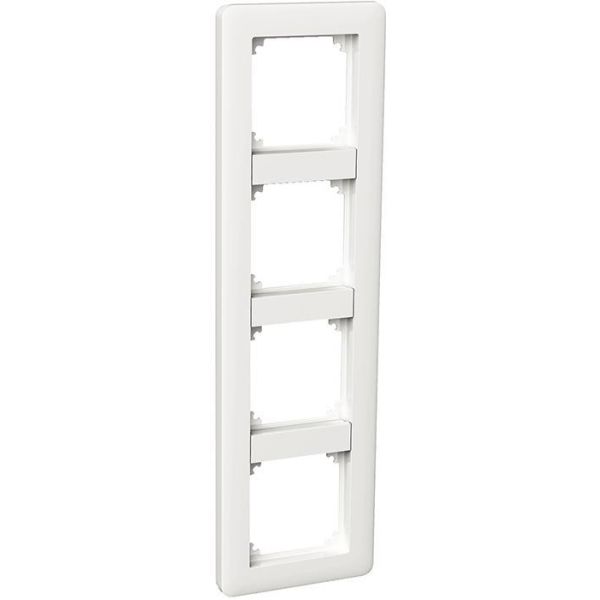 Art.nr: 2817108Kombinasjonsramme med fire rom for vegguttak. For innfelt eller utvendig montering. Bortbrytbar mellomdel som gjør det mulig å montere f.eks. 3-veisuttak i 2-romsramme.