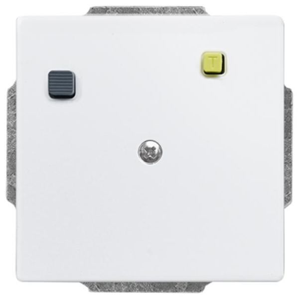 Jordfeilbryter for innfelt montering Jordfeilbryteren er utstyrt med svart knapp for til- og fraslag og en gul knapp for test. Inkl. Imressivo hvit midtplate. Suppler med løs ramme Impressivo, Accent eller Carat