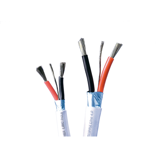 Med sine 2 x 2,5 eller 4 mm² er Supra en videreutvikling av SUPRA Rondo (se underkategorien runde kabler for mer detaljer om Rondo), og den allerede lave induktansen (magnetvirkningen) er her supplert med en skjerm av aluminisert PET-folie som på en svært effektiv måte blokkerer støy- og forstyrrelseslekkasje samt innstråling fra omgivelsene.