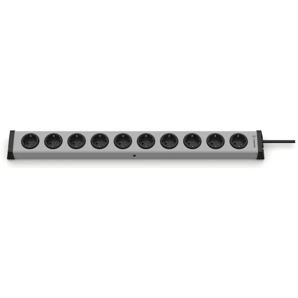 Grenuttak med belyst bryter av slagbestandig termoplast med kabel og påstøpt støpsel. Uttakene er vridde 90°. Kan skrus fast i bord eller på vegg.