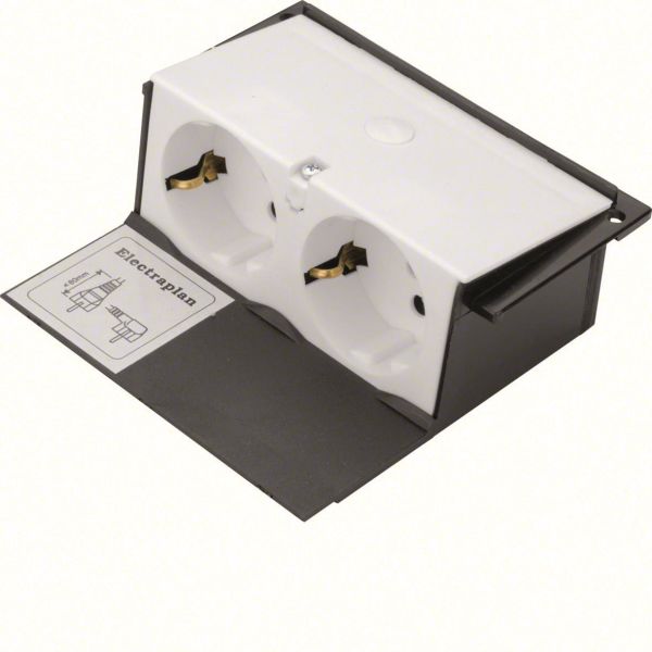 Art.nr: 3105485Et hvitt uttak, 2-veis, komplett, for gulvboks med lav innbyggingsdybde KDQ08/E04.