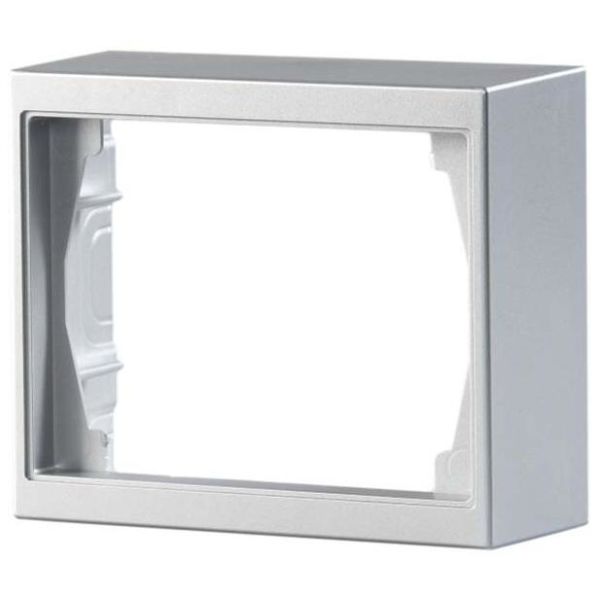 Forhøyningsrammer for 2-veis midtplater, f.eks. 2-veies uttaksinnsats. 1-veis midtplater kan brukes kombinert med reduseringsskive (type 2519-xx). Montering kan skje både loddrett og vannrett, brukes sammen med veggboks 26 mm. Antall apparatbokser er likt med antall rom på forhøyningsrammen.