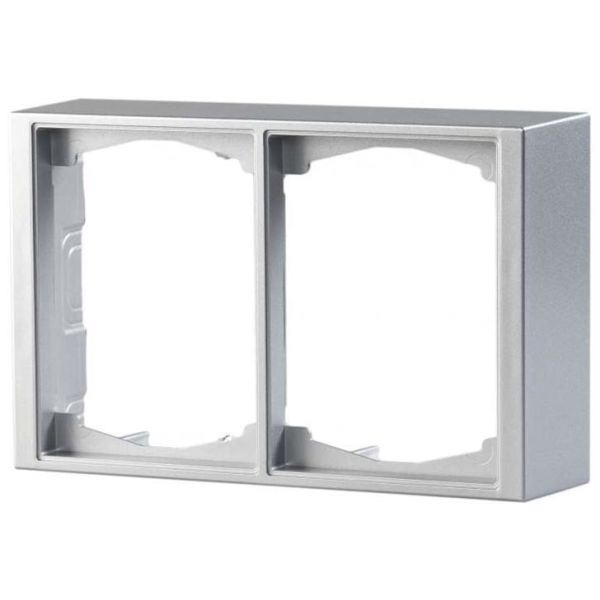Forhøyningsrammer for 2-veis midtplater, f.eks. 2-veies uttaksinnsats. 1-veis midtplater kan brukes kombinert med reduseringsskive (type 2519-xx). Montering kan skje både loddrett og vannrett, brukes sammen med veggboks 26 mm. Antall apparatbokser er likt med antall rom på forhøyningsrammen.
