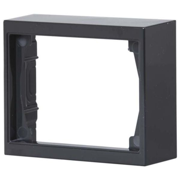 Forhøyningsrammer for 2-veis midtplater, f.eks. 2-veies uttaksinnsats. 1-veis midtplater kan brukes kombinert med reduseringsskive (type 2519-xx). Montering kan skje både loddrett og vannrett, brukes sammen med veggboks 26 mm. Antall apparatbokser er likt med antall rom på forhøyningsrammen.