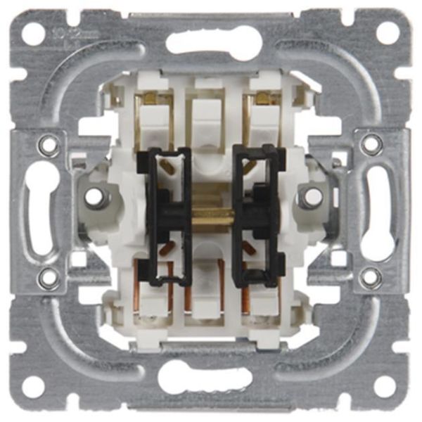 Trykknappinnsatser med tilbakefjærende mekanisme for innfelt montering, IP 20. Hurtigkobling av lederne. 10 A, 250 V. Suppleres med vippe og ramme. 1-polet trykknappsinnsats kan suppleres med glimlampe for riktig spenning.