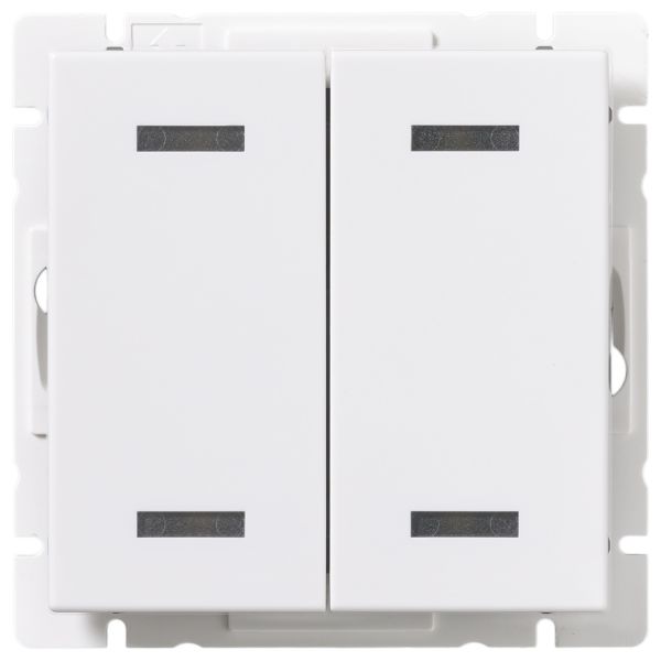 4/2-veis trykknapp for styring av bistabile releer eller elektroniske styringssystemer. Lastekapasitet (5-24V) 1A AC / DC. Hvit LED-lampe med justerbar belysning. For innfelt montering.