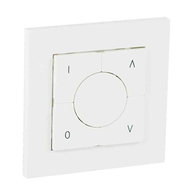 Strømbryter med fire knapper og relé 6 A som består av både sender og mottaker som kommuniserer med andre Elko Wireless-komponenter. Med målene 86 x 86 x 14 mm.