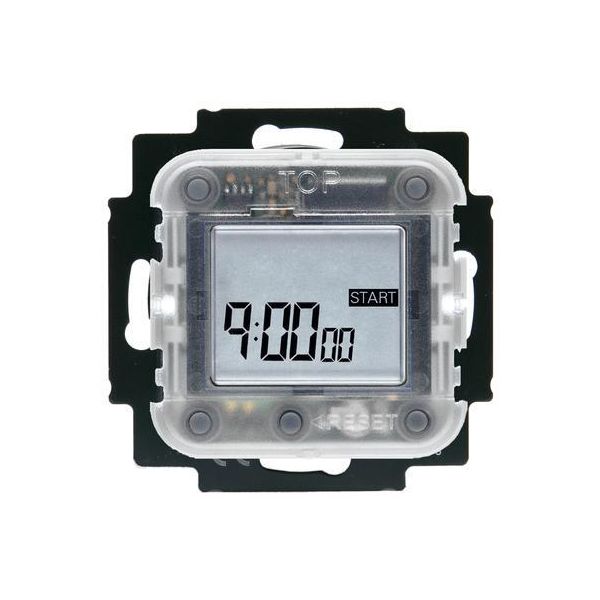 Elektronisk korttidstimer brukes ved aktivering av elektriske forbrukere under innstillbar tid. Når tiden har forløpt, stenges korttidstimeren av. Timernedtelling kan avsluttes ved aktivt å velge at nedtelling stoppes for deretter ved neste aktivering å starte nedtelling igjen fra startpunkt. Program 1: manuell innmating med tidsperiode mellom 1 s og 9 timer 59 min 59 s. Program 2: faste tidsperioder 15; 30; 45 minutter. 10 A, 230 V. Maks. last 10 A. Tolv timers batteribackup. Suppleres med sentrumplate 1330035-1330036