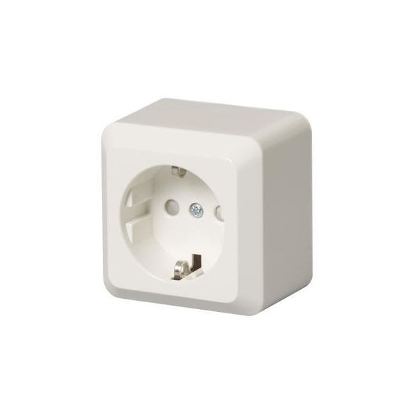 Art.nr: 3023104Komplette vegguttak for utenpåliggende montering, IP 20. Alpinhvit.