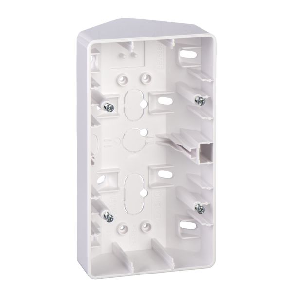 Schneider Electric hjørneboks Exxact leveres komplett i blisterpakning og er beregnet for bruk ved hjørneinstallasjoner.