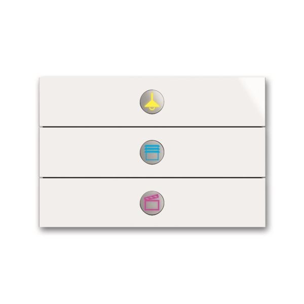 Art.nr: 3073574Fritt programmerbar multifunksjonstrykknapp Kan monteres i 1-, 2- eller 3-roms montasjerammer.
