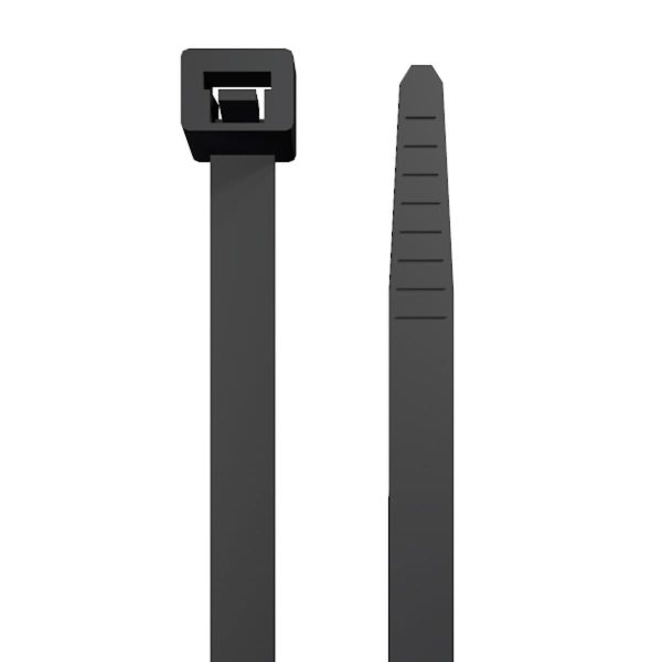 Buntebånd for kabel- og ledningsmontasje i installasjonsmiljøer som krever høy buntstyrke og lang levetid. Med målene 7,5 x 750 mm. Buntebåndene kan ikke åpnes igjen etter montering.