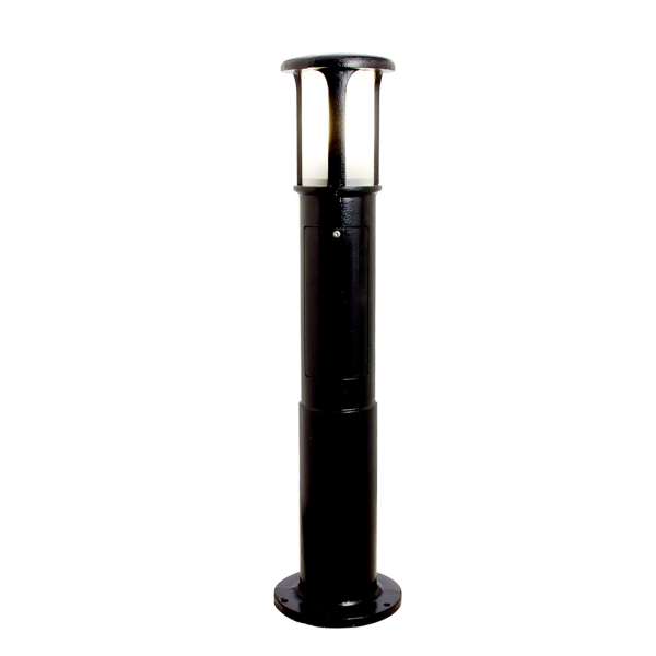 Pullert med rotasjonssymmetrisk lysmønster, laget av sterkt støpejern og med frostet akrylsylinder. Armaturhuset er utstyrt med en utskiftbar LED-enhet eller E27-kontakt. Pullerten har en koblingsluke og en rund fotplate med tre boltehull.