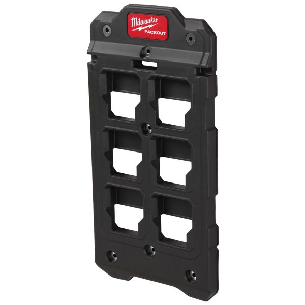 Milwaukee 4932480621 Flere monteringskonfigurasjoner. Gjør PACKOUT om til stasjonær lagring. 45 kg vektkapasitet ved gulvmontering. 22 kg vektkapasitet for veggmontering. Passer til PACKOUT-systemet. Slagfast polymerkonstruksjon.