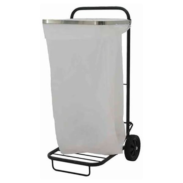 Hykab 11675 er et stativ for avfallssekker. Et sammenleggbart stativ med store lettrullende gummihjul.