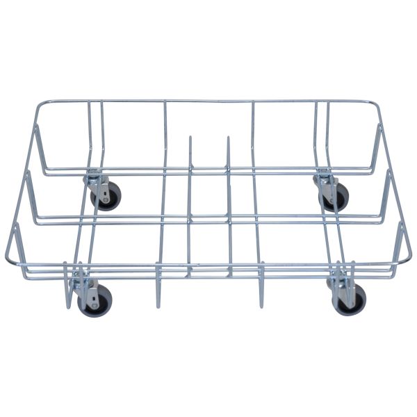 Art.nr: 3056532Vogner til 1–3 x 60 l beholder i forsinket metall med lettrullende gummihjul. Vognen kan stables med skikkelige hjulfester.