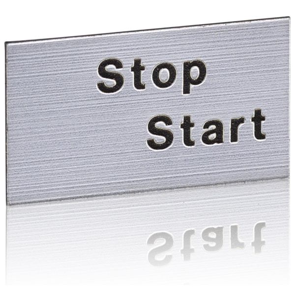 Art.nr: 4015089Skilt i ABBs MA6-serie. Dette skiltet er merket med teksten "Stopp/Start".