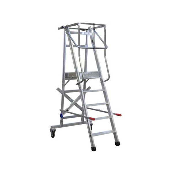 Art.nr: YB19614Arbeidsplattform med godt beskyttelsesrekkverk og kraftige hjul. Har en størrelse på 60 x 45 cm, høyden til plattformen er 2,5 m og arbeidshøyden er 4,5 m. Trappens trinn er hele 13 cm dype, har riller for sklibeskyttelse og de innfellbare støttebena gjør trappen lett å manøvrere ved begrenset plass samtidig som maksimal stabilitet oppnås ved bruk. Støttebena er stillbare for å kunne tilpasses hinder på gulvet.