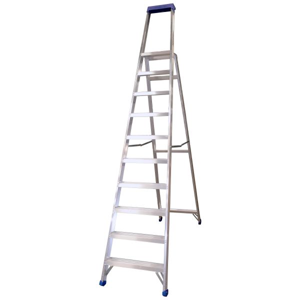 Stabil og robust trappestige i aluminium som tåler hard og krevende bruk. Stigen har hydraulnaglete trinn, en stabil plattform samt en hylle. Plattformens mål er 375 x 250 mm og trinn-dybden er 81 mm. Stigen er utstyrt med plastføtter som gir godt sklibeskyttelse og samtidig beskytter underlaget.