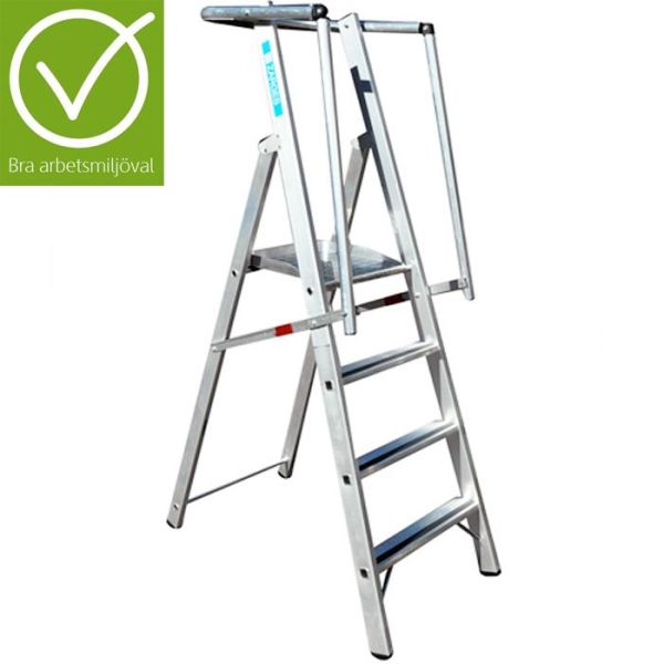 Art.nr: YS19105-3Godkjent trappestige iht. Bra arbeidsmiljøvalg. Arbeidsplattform på 400x400 mm med sklisikring og rekkverk rundt for maksimal arbeidssikkerhet.