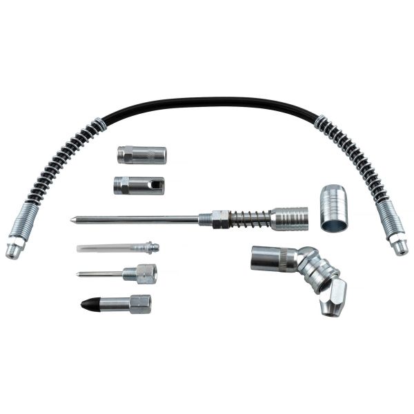 Materialer av høy kvalitet og robust konstruksjon sikrer lang levetid, selv i krevende verkstedmiljøer. Dette settet gir deg maksimal fleksibilitet og presisjon. Med både rett og vinklet kobling samt nåledyser får du nøyaktig påføring der det trengs – også på vanskelig tilgjengelige steder.