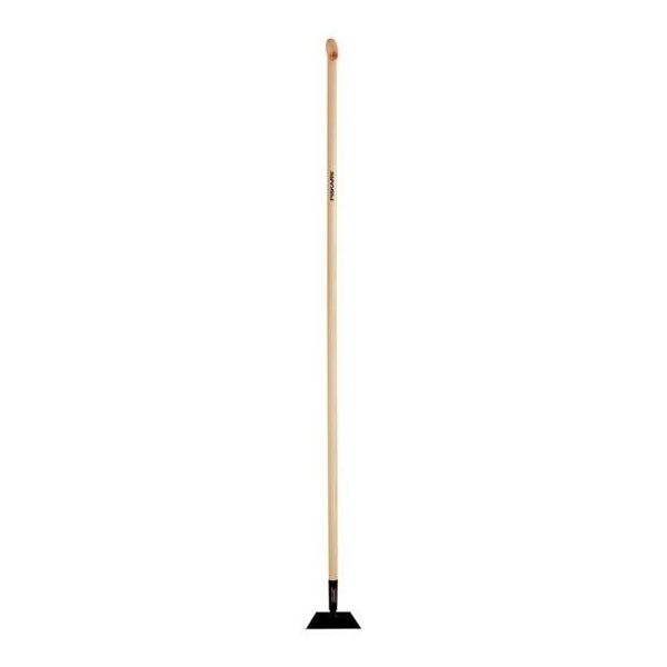 Fiskars 5332 er et 1590 mm langt skuffejern med treskaft skråstilt krykke og 150 mm bredt hode i herdet stål.