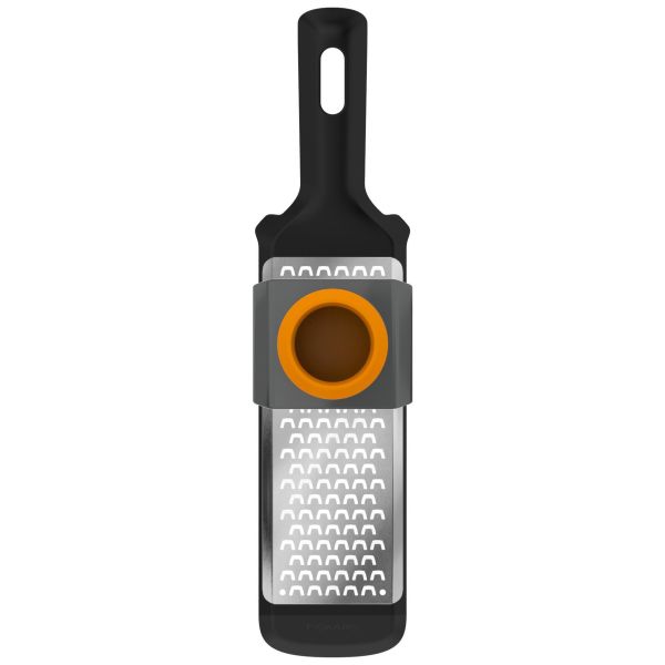 Functional Form 1014410 er Fiskars grove rivjern med fingerbeskyttelse i Functional Form-serien, perfekt til grønnsaker, frukt og ost - trygt og enkelt.