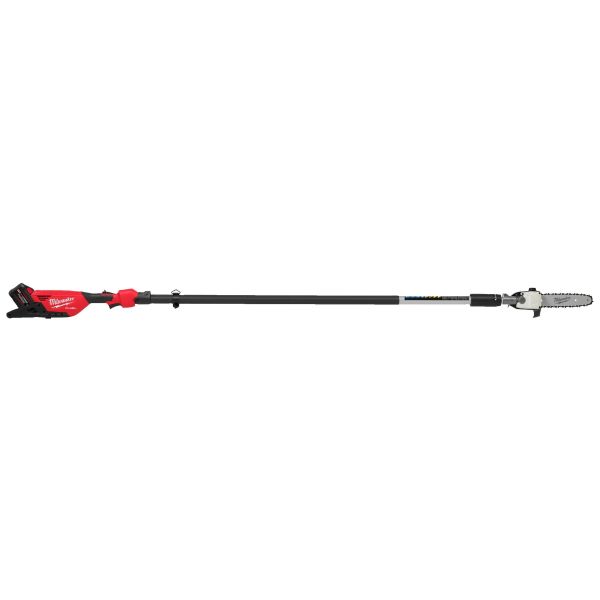 Milwaukee M18 FUEL teleskopisk stangsag med høy ytelse. Kjedehastighet på 25,4 m/s og 30 cm sverd gir høy skjærehastighet. Sager raskere enn tilsvarende bensinsager. Teleskopfunksjon med hurtiglås, justerbar mellom 270 og 400 cm. Opptil 70 kutt i 150 x 150 mm per lading med et 12,0 Ah-batteri. Trinnløs hastighetsregulering. Lekkasjefri, automatisk kjedesmøring. Vekt med batteri 8,3 kg. Leveres med 1 x 12,0 Ah REDLITHIUM FORGE-batteri, M12-18 FC lader (130 min ladetid) og skulderreim i kartong.