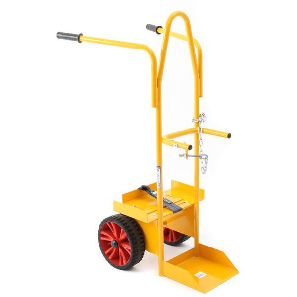 Art.nr: 2620014Sveisevogn for både sveiseaggregat og 20–50 liters gassflasker. Med punkteringsfrie massivgummihjul, festestropp og løftebøyle.