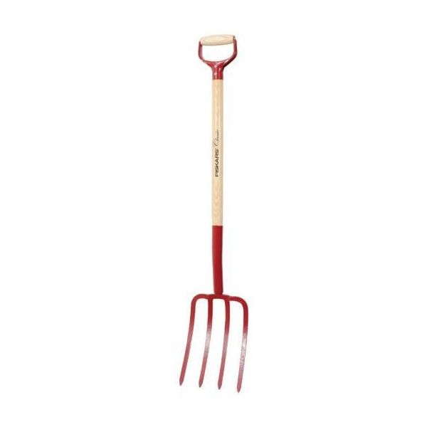 Fiskars 1615 er en greip med 4 klør og lakkert treskaft. Egner seg bl.a. til luking av kompost og opptak av potet.