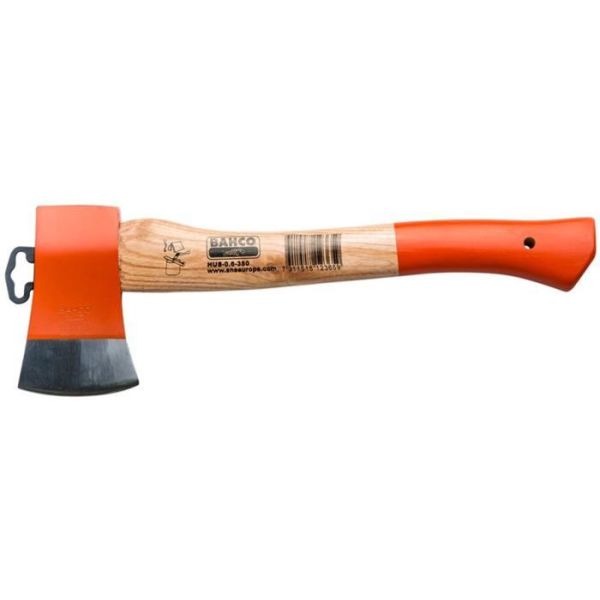 Bahco HUS-0.6-380 er en hobbyøks av herdet stål av høy kvalitet, med en total lengde på 380 mm. For camping, hagearbeid og lettere renskeoppgaver. Øksen har et bøyd skaft i ask som er festet med en karbonfiberforsterket kile. Med opphengshull i skaftet.
