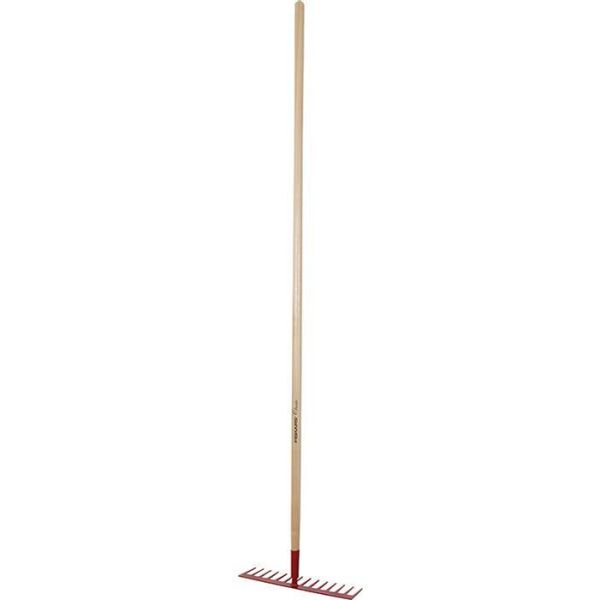 Forsterket i ryggen på hodet for å tåle større daglige påkjenninger. Den er ypperlig til å greie og planere ut asfalt, betong og annen masse med, samtidig som tindene er solide nok til å rake i de fleste typer materialer. Med 14 tinder.