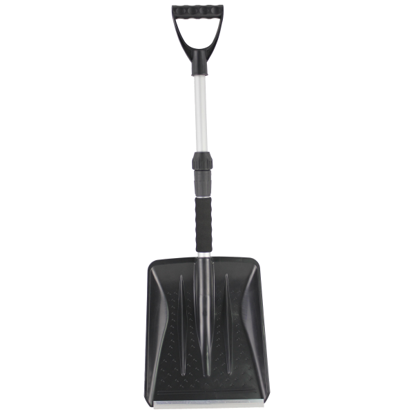 Briv 81-780655 er en svart, robust snøskuffe med teleskopskaft. Skuffen passer utmerket i bilen, på snøscooteren og på fjellet. PP-plast med blad med metallslitekant.