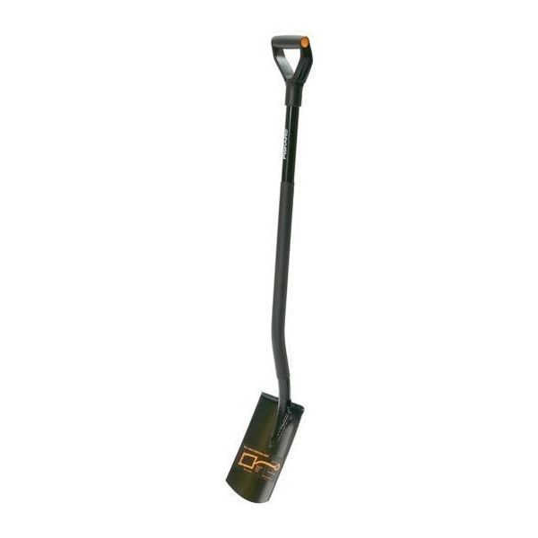 Fiskars Ergonomi 131420 er en halvrund ergonomisk spade med forsterket dråpeformet ergonomisk skaft som passer til graving av steinete jord, leire, røtter og gresstorv. Utstyrt med et ergonomisk plasthåndtak.