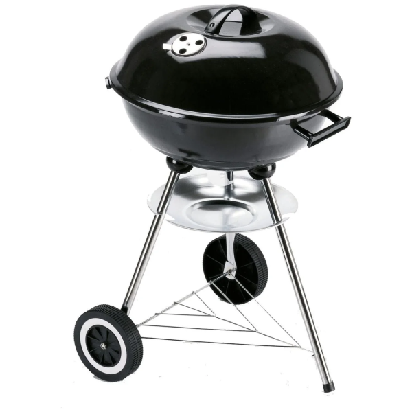 Kulegrill fra Landmann med forkromet grillrist med håndtak, emaljert ildskål, lokk samt kullrist. Grillen har integrerte luftventiler som gir mulighet for optimal varmefordeling. De 3 stativbena sørger for at grillen står stabilt på de fleste underlag, og de 2 hjulene muliggjør enkel transport. Grillen er utstyrt med en praktisk askeskuff for fallende aske og glør under grilling.