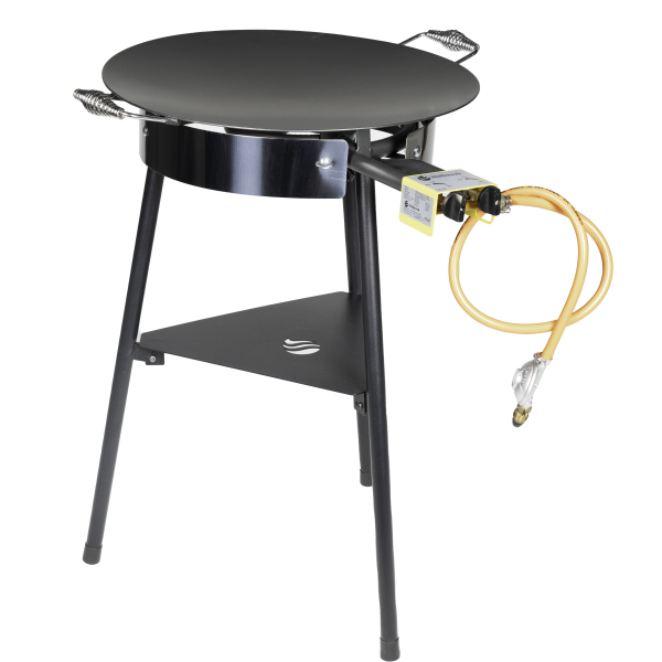 En populær stekehelle for opptil 8 personer. En allroundhelle som passer både for små og store selskaper. Like godt egnet på tur og camping som i utekjøkkenet i hagen. Stekehellen kan brukes sammen med den medfølgende gassbrenneren på stativ, men også på en grill eller direkte over åpen ild.