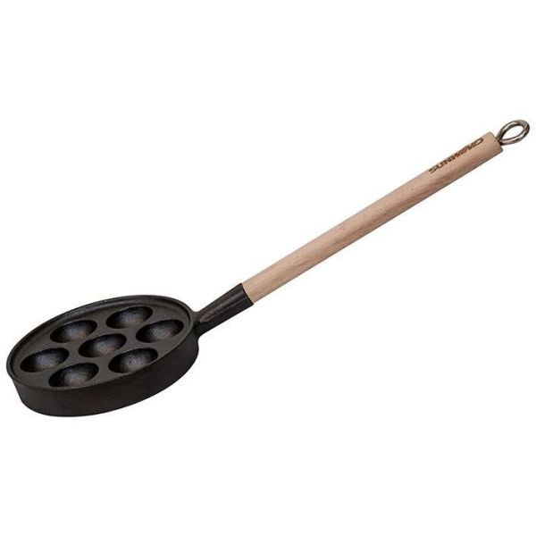 Munkjern Gropa, rommer 7 munker om gangen. Laget i solid støpejern som holder godt på varmen, med et ekstra langt håndtak for bruk over bålpanne eller åpen ild.