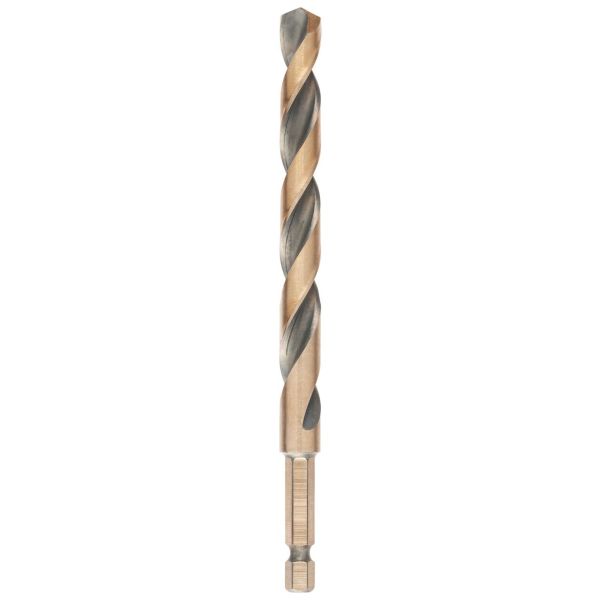 135° delt spissdesign reduserer risikoen for at boret vandrer ved start. Kraftig, tilspisset kjernedesign for svært høy slitestyrke og motstand mot brudd. BLACK & GOLD-belegg for å forhindre rust og slitasje. IMPACT READY 1/4" sekskantskaft konstruert for å tåle radiært dreiemoment ved bruk med slagskrutrekker, og er kompatibelt med de fleste bor-/skrutrekkere. Størrelsesmarkeringer på borskaftet for rask identifisering av dimensjoner. Høyhastighetsstål (HSS) for bruk i plast, tre og metall.