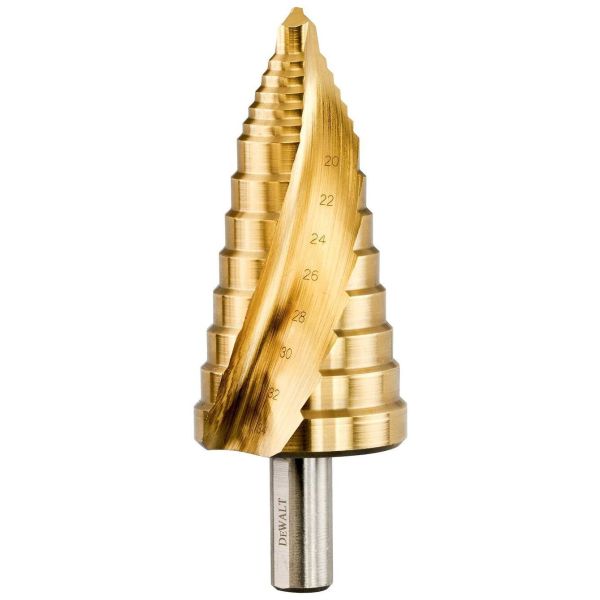 Trinnbor for boring i metall.Boret har spesialspiss for økt hastighet og lengre levetid, og lasergraverte mål for økt synlighet.Tokanalsdesignen gir lengre levetid og bedre fjerning av spontransport.