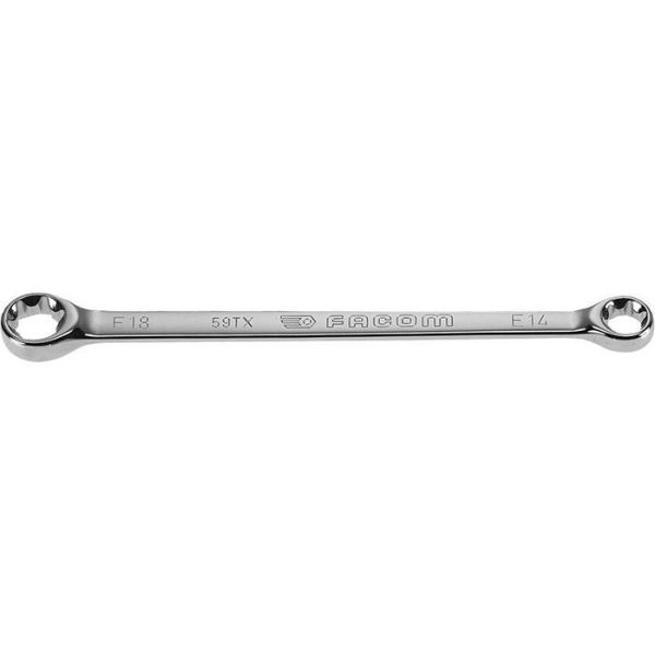 Facom 59TX.14X18 er en Torx-ringnøkkel på E14xE18. Nøkkelen har 30° trinn ved å vende nøkkelen, takket være spesiell rifling.