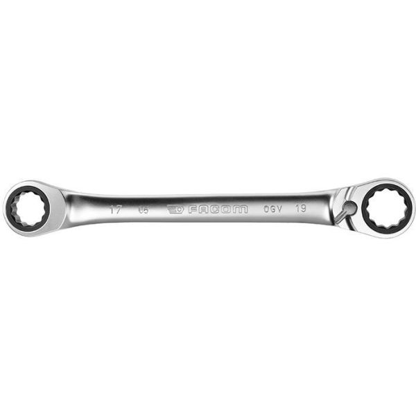 Facom 65.6X7 er en ringnøkkel med sperre. Nøkkelen er vinklet 15° med nøkkelvidder på 6 mm og 7 mm.