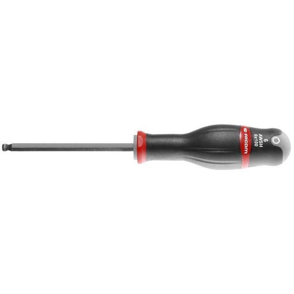 Facom ATWSH5X100 er en sekskantskrutrekker med et sfærisk hode som gjør det mulig å håndtere skruer med hellingsvinkler på opptil 30°. Håndtaket er ergonomisk utformet og produsert i tokomponentsmateriale, noe som gjør at trekkeren håndteres behagelig i alle posisjoner.