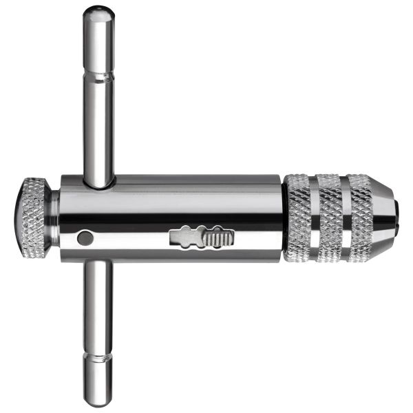 Chuck med to bakker. Riflet chuckhylse. Høyre/venstre samt fast stilling. Skyvbart håndtak. Forniklet.
