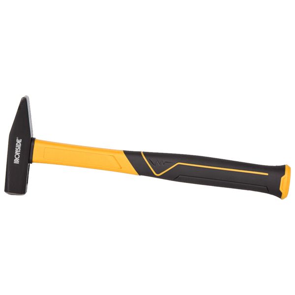 Ironside 103043 er en verkstedhammer med penn og firkantet slagflate i henhold til DIN 1041. Antisjokk og rekyldempende glassfiberskaft belagt med PP, med ergonomisk utformet og oljebestandig anti-slip-grep.