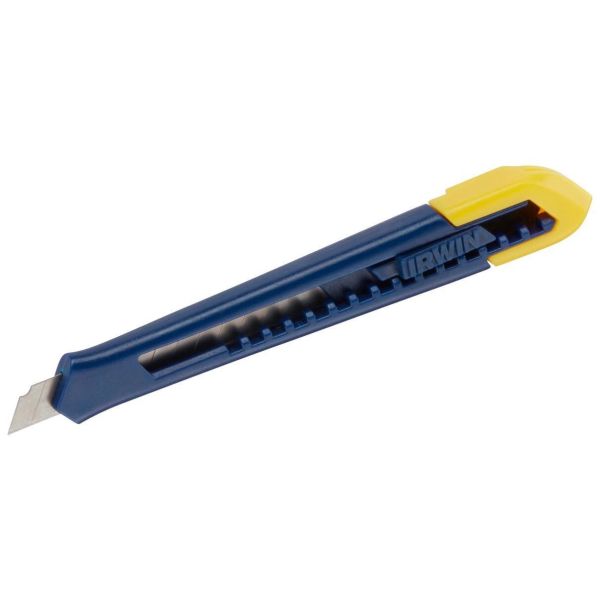 Irwin 10506546 er en populær brytebladkniv med selvlåsende bladjustering. Avtakbart endestykke som kan brukes til å bryte av det brukte segmentet.