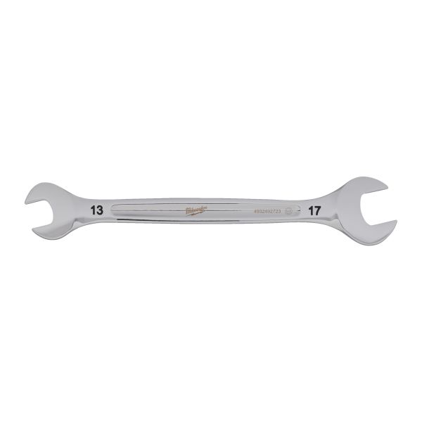 Milwaukee dobbel ringnøkkel med rundt l-profilhåndtak og smalt hode for bedre tilgang. Blekkstemplede størrelser og kromfinish for rustbeskyttelse.