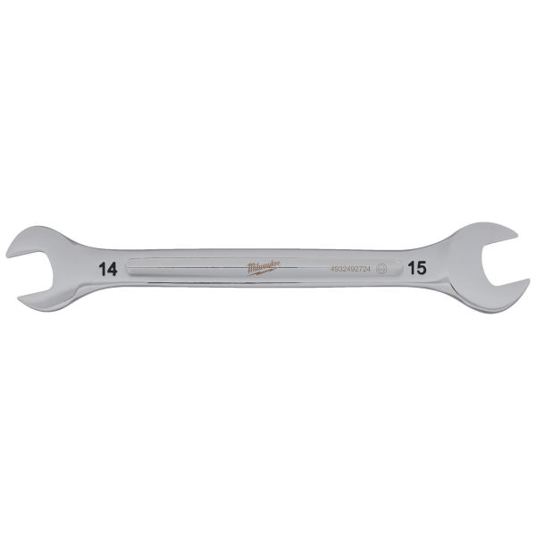 Milwaukee dobbel ringnøkkel med rundt l-profilhåndtak og smalt hode for bedre tilgang. Blekkstemplede størrelser og kromfinish for rustbeskyttelse.