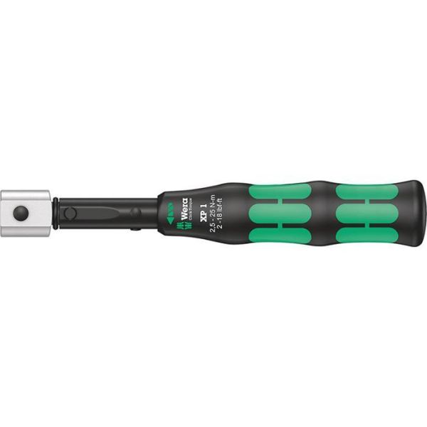 Wera Click-Torque XP 1 er en momentnøkkel for innsatsverktøy med en forhåndsinnstilt momentverdi på 2,5 Nm. Forhåndsinnstilt moment for alle anvendelser der konstant og repeterbart moment kreves. Momentverdien kan endres i måleområdet. Den robuste utløsermekaniken gir et tydelig hørbart og taktilt signal når innstilt moment oppnås. Leveres med holder for innsatsverktøy med utvendig firkant på 9 x 12 mm.