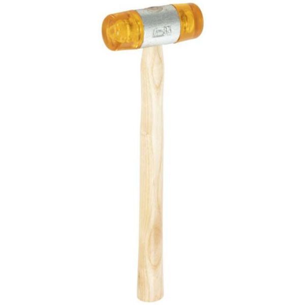 Plasthammer 252/20 med plasthode som er enkel å bytte ut. Skaftet er laget av ask. hodet og skaftet er satt fast med ringkil.